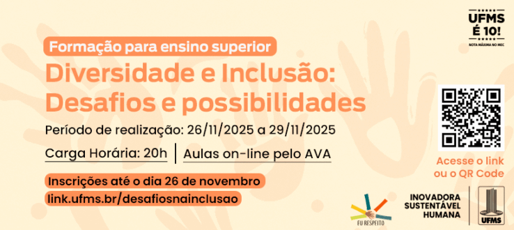 Inscrições até 26/11/2025 Período do curso: 26/11/2025 a 29/11/2025 Local: AVA UFMS Instrutores: Mirella Villa de Araujo, Tucunduva da Fonseca, Catarina Rodrigues, Thais França Batista e Vanderley Rodrigues. Modalidade: O curso será desenvolvido em aulas online, síncronas e assíncronas com atividades teóricas e práticas Carga Horária: 30h Vagas: 30 a 60