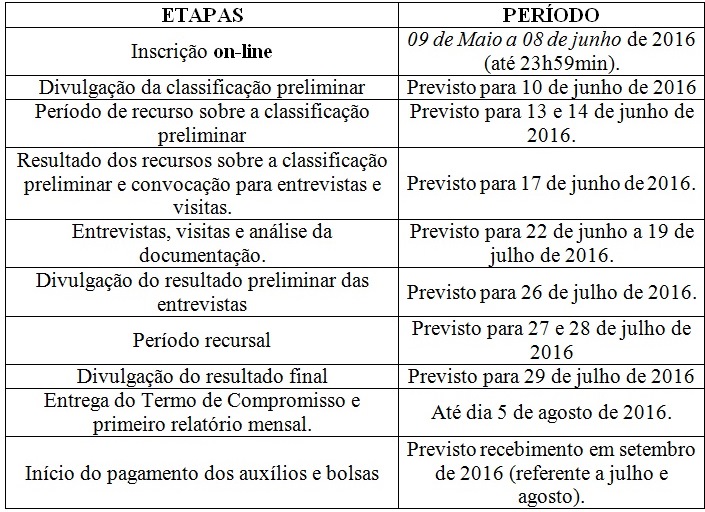 Calendario do Processo Seletivo