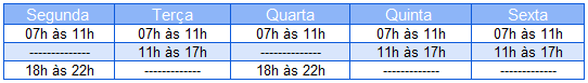 Horários de funcionamento: